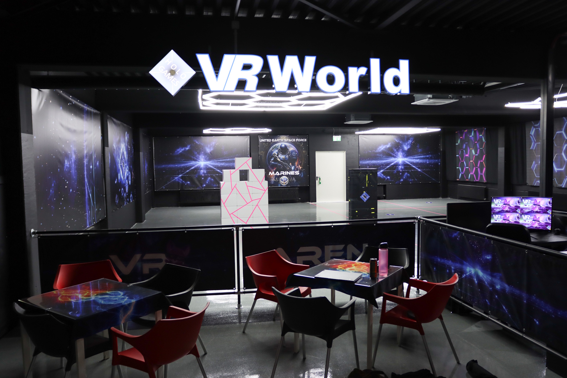 Tauche ein in die Welt der Virtual Reality bei der HOLO GAMES VR World in Düren. Hier erwartet dich modernste VR-Technologie – von Free-Walk AR & VR Erlebnissen bis hin zu beeindruckenden Motion-Simulatoren mit 360°- und spektakulären 720°-Bewegungen, bei denen du Virtual Reality nicht nur siehst, sondern hautnah erlebst. Ob alleine, mit Freunden oder in der Gruppe: Unsere vielfältige Auswahl an Action-Games, Abenteuern und Escape-Erlebnissen sorgt für Nervenkitzel und unvergessliche Momente. Neben Virtual Reality bietet die HOLO GAMES VR World auch klassische Freizeitangebote wie Billard, Dart und Kicker sowie einen gemütlichen Gastrobereich mit warmen Speisen, Snacks und Getränken – perfekt zum Abschalten zwischen den Sessions. Außerdem sind wir die ideale Location für Geburtstage, Gruppen-Events und Corporate Events mit einzigartigen Teambuilding-Erlebnissen. Erlebe Freizeit neu und entdecke, warum die HOLO GAMES VR World die neue Top-Adresse für Action und Entertainment in Düren ist.